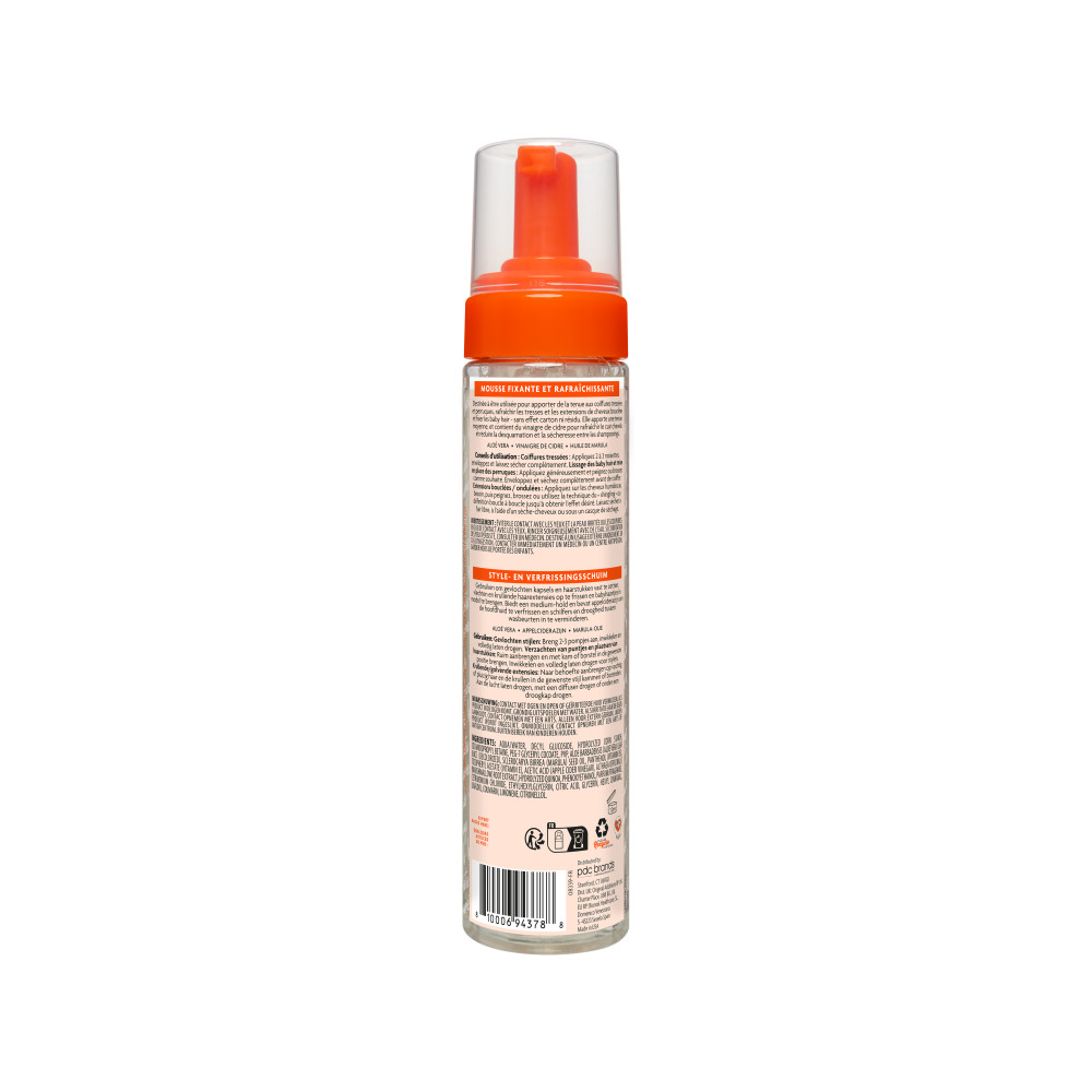 Destinée à être utilisée pour apporter de la tenue aux coiffures tressées et perruques, rafraîchir les tresses et les extensions de cheveux bouclées et fixer les bords - sans effet carton ni résidu. Elle apporte une tenue moyenne, et contient du vinaigre de cidre pour rafraîchir le cuir chevelu et réduire la desquamation et la sécheresse entre les shampooings.