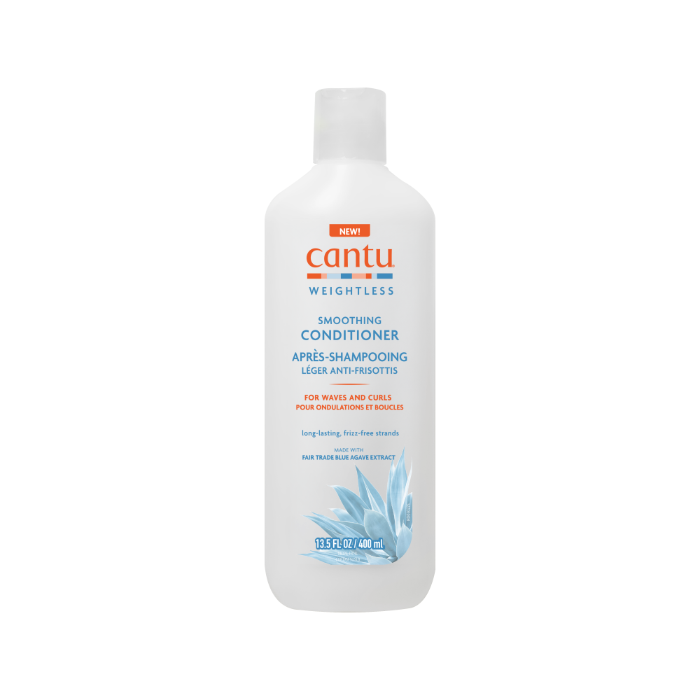 NOUVEL Après-Shampooing Lissant Léger Cantu Weightless, spécialement formulé pour les cheveux ondulés et bouclés. Cet après-shampooing ultra-léger apporte de l’hydratation, aide à réduire les frisottis et facilite le démêlage pour des cheveux doux et lisses.